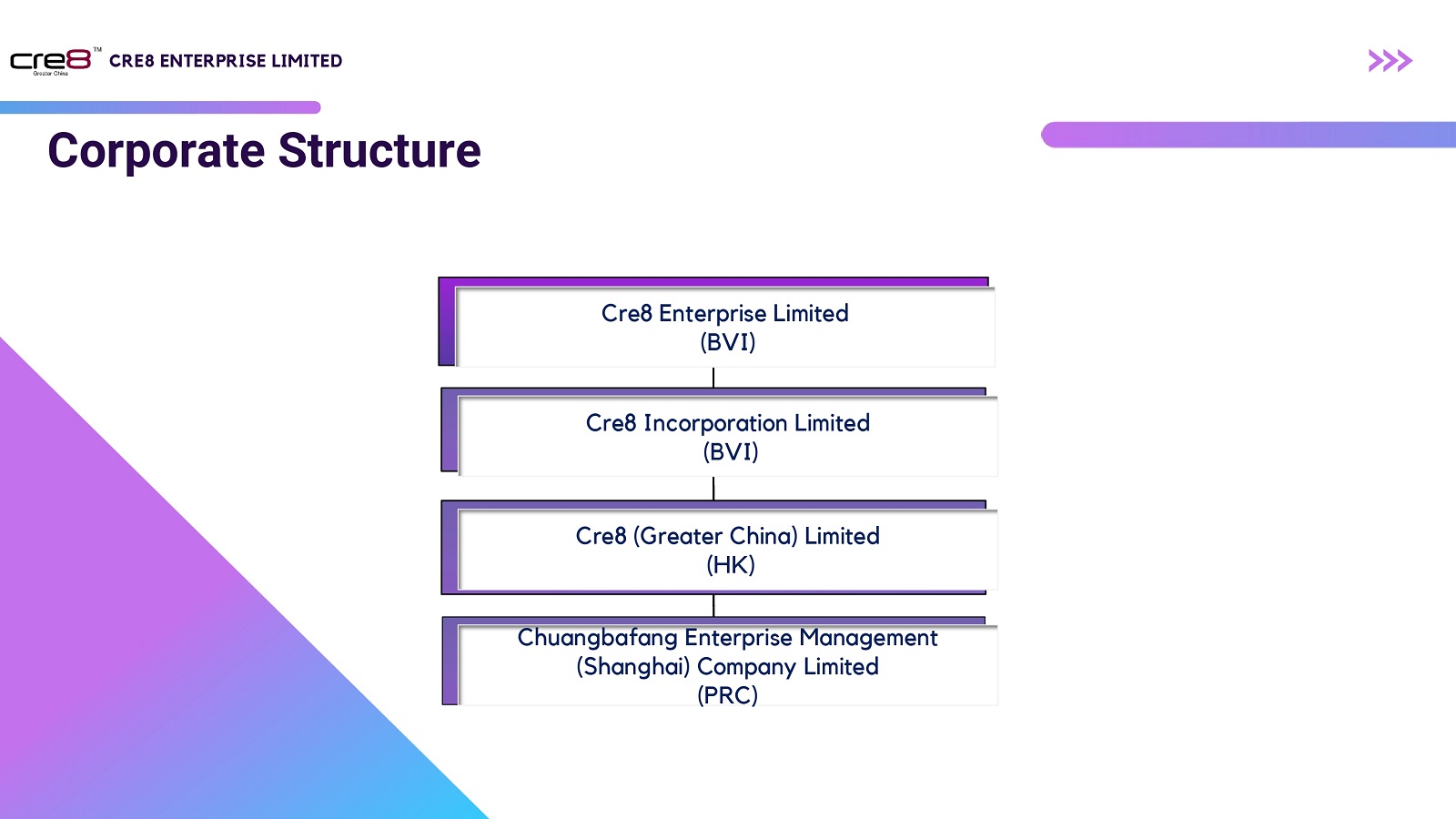 CRE8 ENTERPRISE LIMITED Corporate Structure Cre8 Enterprise Limited (BVI) Cre8 Incorporation Limited (BVI) Cre8 (Greater China) Limited (HK) Chuangbafang Enterprise Management (Shanghai) Company Limited (PRC)